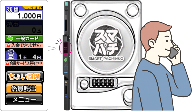 残金・持玉を残したまま離席している遊技台や掛け持ち遊技のために携帯電話やタバコなど置いた放置遊技台などを従業員が見つけた時には、リモコン操作によりユニットを利用停止状態にさせることができます。
