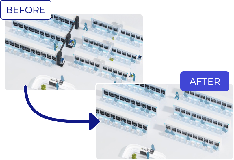 また、これまでの各台計数導⼊による⽟箱の運搬作業軽減に加 え、スマートパチスロ導⼊によりさらにスタッフの削減が可能となります。