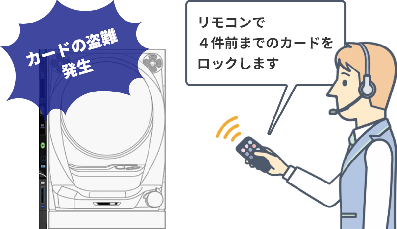 カードの盗難があった場合、従業員がその場でリモコン操作することにより、4件前まで入っていたカードをロック。