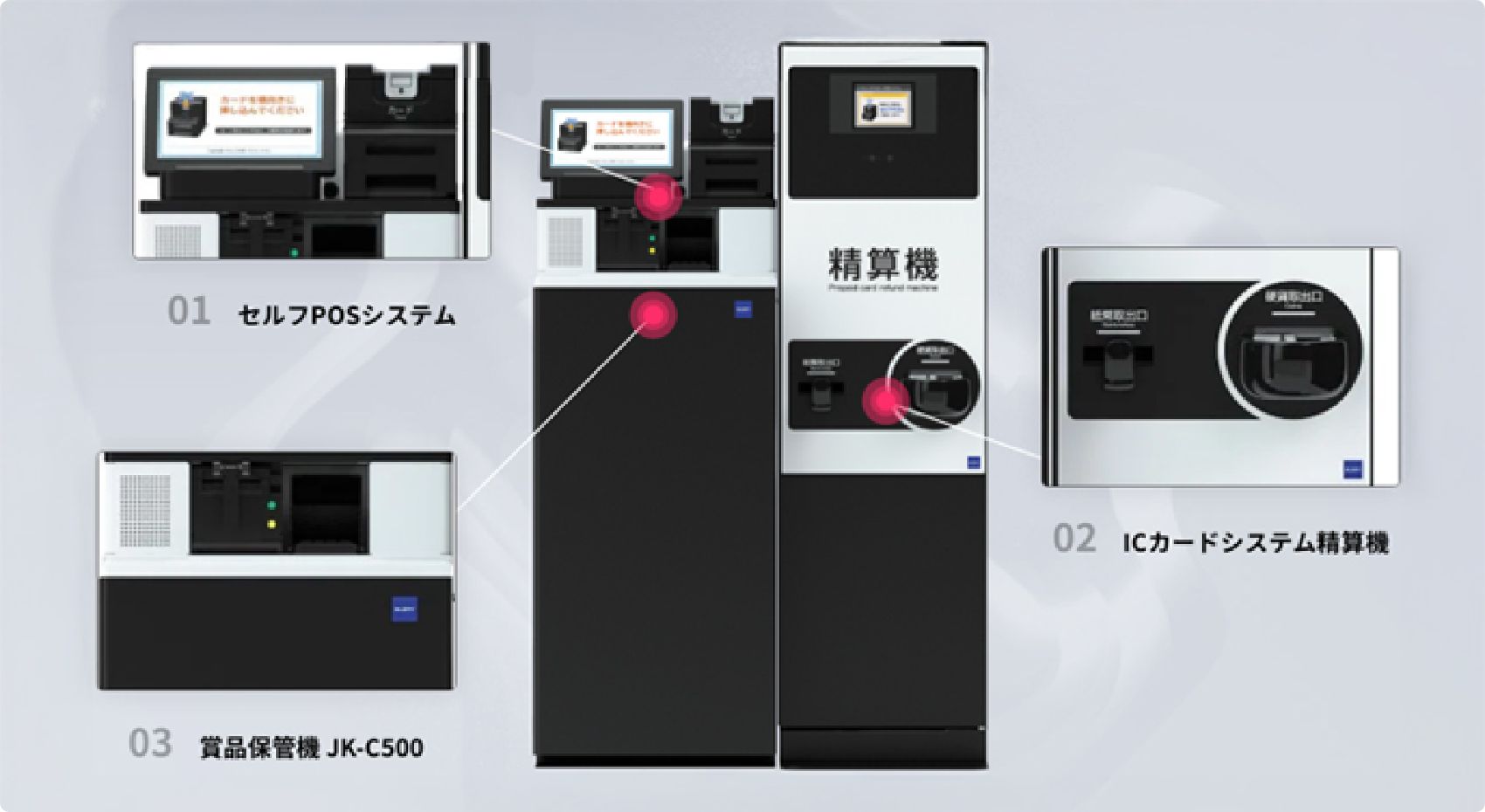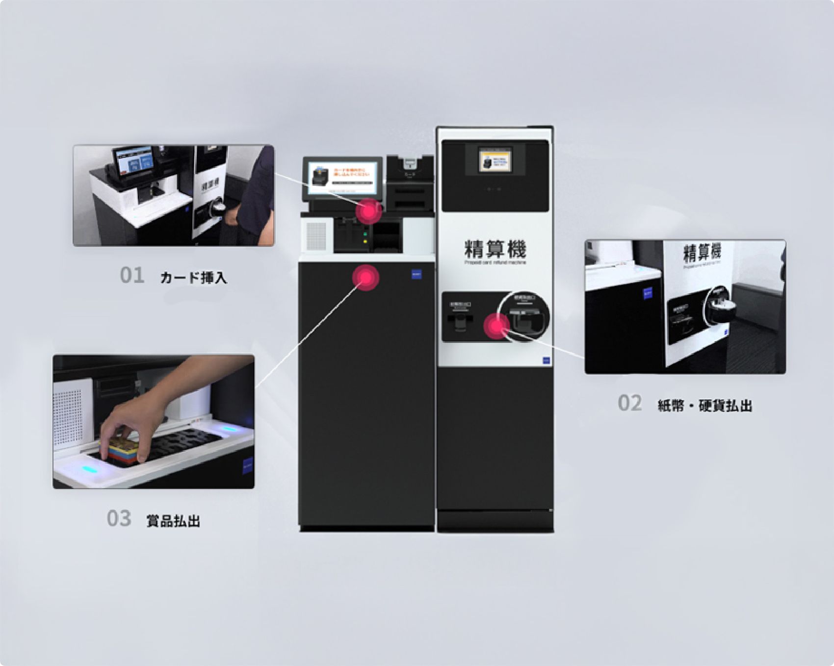 壁側に設置する銀行ATMスタイル複数台設置することでお役様を待たせることなくスムーズな賞品交換・精算を実現します。